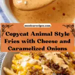 This Animal Style Fries recipe is an In-N-Out burger joint classic replication featuring crispy oven-baked fries topped with melted American or Cheddar cheese, sweet caramelized onions, and a tangy, creamy special sauce. Perfect for a savory snack or a fun appetizer, these loaded fries are bursting with flavor and easy to prepare at home.