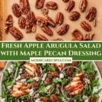 A fresh and vibrant Apple Arugula Salad featuring thinly sliced apples, peppery arugula, sweet figs, tangy goat cheese, and crunchy maple-glazed pecans, all brought together with a flavorful balsamic maple dressing. This easy-to-make salad offers a delightful combination of sweet, tangy, and savory flavors perfect for a light lunch or elegant side dish.