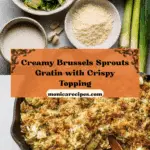 This Brussels Sprouts Gratin is a creamy, cheesy baked casserole featuring tender shredded Brussels sprouts combined with leeks, garlic, rich Gruyère and Parmesan cheeses, seasoned with fresh thyme and nutmeg, and topped with a golden crispy panko breadcrumb crust. It’s a comforting and elegant side dish perfect for family dinners or holiday gatherings.