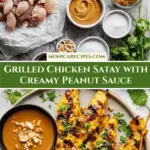 Delicious Chicken Satay with a rich and creamy peanut sauce, marinated in fragrant spices and coconut milk, then grilled to perfection. This flavorful Southeast Asian-inspired dish is perfect for gatherings and serves six.