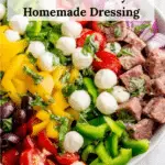 A vibrant and flavorful Chopped Italian Salad combining fresh vegetables, savory salami, and mozzarella, tossed in a zesty homemade dressing. Perfect for a quick, refreshing meal rich in Mediterranean flavors.