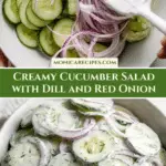 A quick and easy Creamy Cucumber Salad featuring fresh cucumbers and red onions tossed in a tangy sour cream dressing flavored with lemon juice and dill. This refreshing salad is perfect as a light side dish or snack, ready in just 15 minutes, making it ideal for warm weather meals and potlucks.
