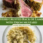 A flavorful Dijon herb crusted rack of lamb recipe that features a seared and roasted rack of lamb coated with a zesty Dijon mustard and fresh herb breadcrumb crust. This elegant dish delivers tender, juicy lamb chops with a crisp, aromatic crust, perfect for a special dinner or holiday meal.
