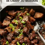 As soon as your steak bites come off the heat, sprinkle generously with sesame seeds and chopped green onions for a fresh burst of texture and flavor. These little toppings elevate the dish into something truly special.