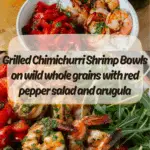 These Chimichurri Shrimp Bowls are a vibrant and healthy meal made with grilled marinated shrimp, whole grains, roasted red pepper salad, and arugula. Packed with fresh herbs and bold flavors, they’re perfect for a light summer or fall dinner.
