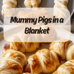 - Wrap each mini hot dog with 1 strip of dough, leaving a small gap for eyes.