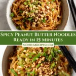 This Spicy Peanut Butter Noodles recipe is a quick and flavorful dish combining tender brown rice noodles with a rich, creamy peanut sauce infused with garlic, ginger, and a kick of heat from sriracha and red pepper flakes. Ready in just 15 minutes, it’s perfect for a satisfying lunch or dinner with options to add your favorite protein or veggies.