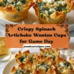 This Spinach-Artichoke Dip Wonton Cups Recipe is just the kind of delightful snack that makes any occasion feel special. The contrast between the crunchy wonton shells and the creamy, flavorful filling is pure magic. Whether you’re hosting a party, looking for an impressive appetizer, or just want a scrumptious bite to enjoy with loved ones, these cups deliver every time. Give them a try — I promise they’ll quickly become one of your favorite recipes too!