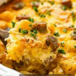 This easy Tater Tot Breakfast Casserole combines crispy potato nuggets, savory sausage, eggs, cheese, and seasonings into one hearty dish perfect for weekends or holidays. It’s simple to prepare and bakes up golden, cheesy, and satisfying every time.