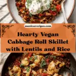 A hearty and flavorful Vegan Chopped Cabbage Roll Skillet featuring roasted cabbage, lentils, rice, and a rich tomato-based sauce, all simmered to perfection in a single pot. This plant-based dish is comforting and perfect for a nutritious family meal.
